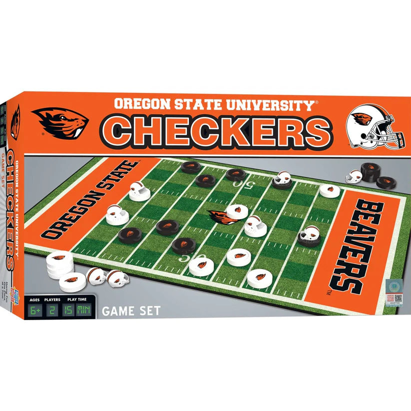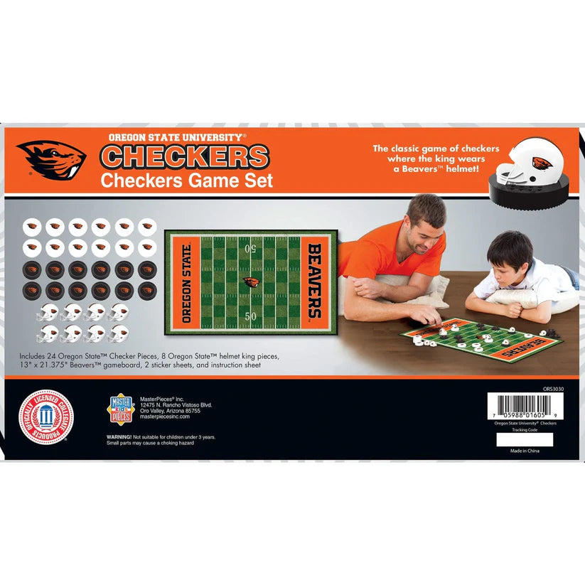 Bring Beaver pride to your next game night with the Oregon State Beavers Checkers Board Game! This officially licensed NCAA edition transforms the classic checkers game with team-colored orange and black checker pieces, helmet king pieces, and a vibrant Oregon State-themed game board. Perfect for fans, students, and alumni, it combines strategy and school spirit for endless fun.